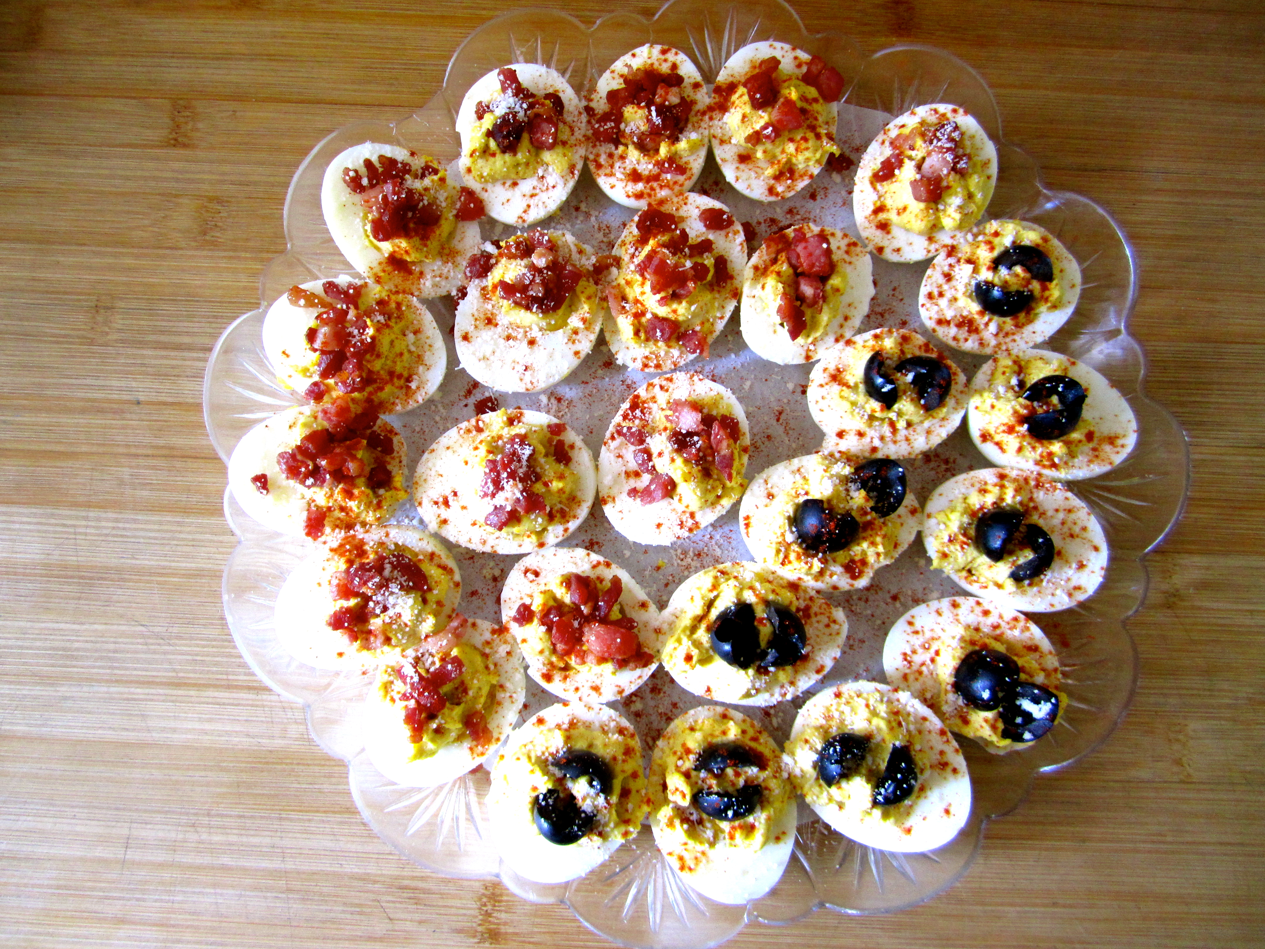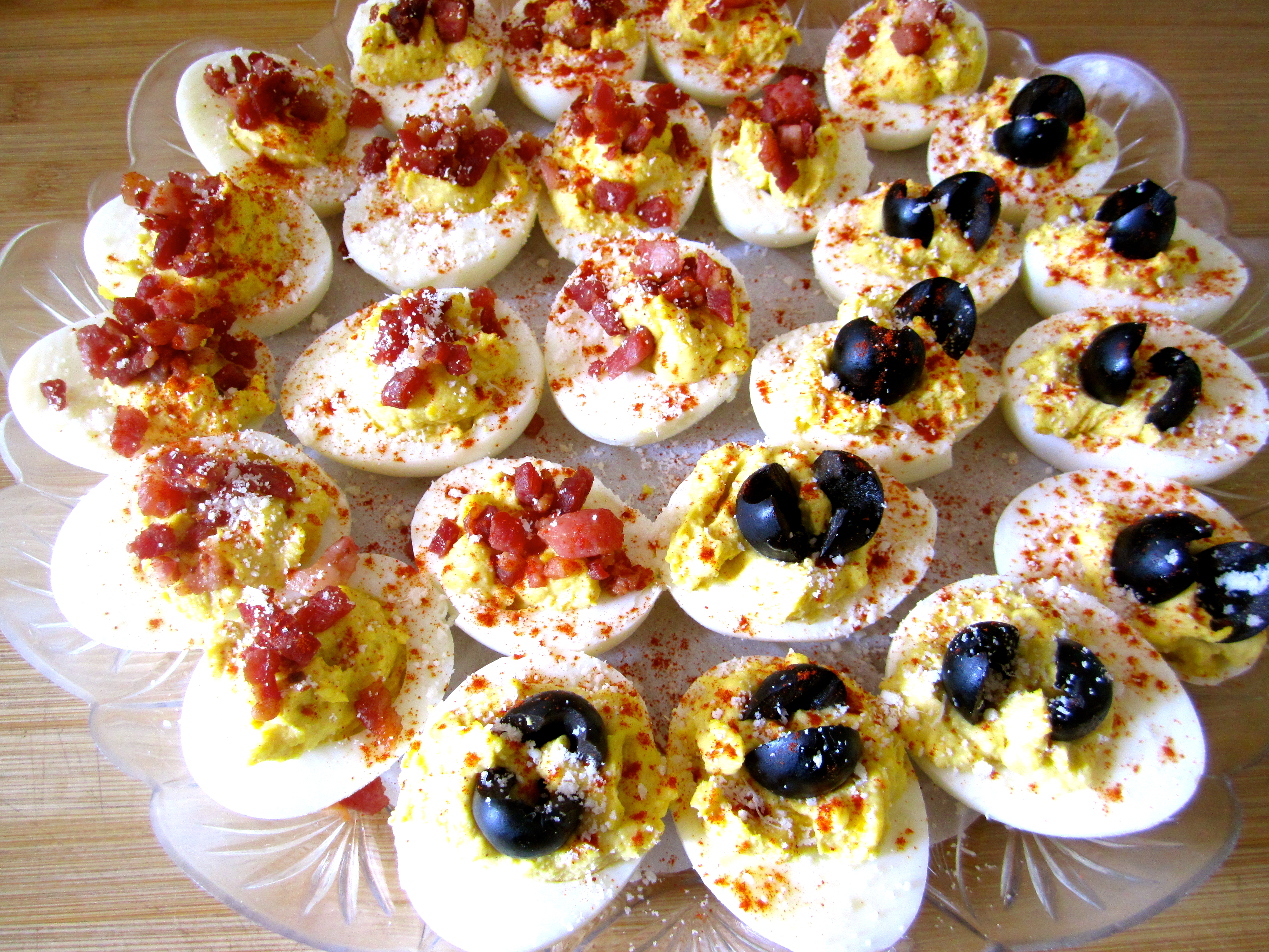 I decided to get a little creative with the ingredients and stray from some of the more “traditional” styles of deviled eggs, and they turned out to be a huge hit: especially if you have any bacon lovers in the group.